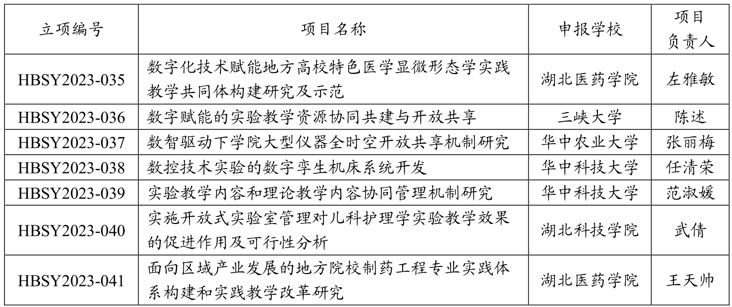 近日,湖北省高等学校实验室工作研究会发布《关于2023年湖北省高等学校实验室研究项目立项的通知》,全省48所高校共175项有效立项申请,最终获批立项105项。我校首次申报的2项全部获批立项并获得立项资助,立项率100%。