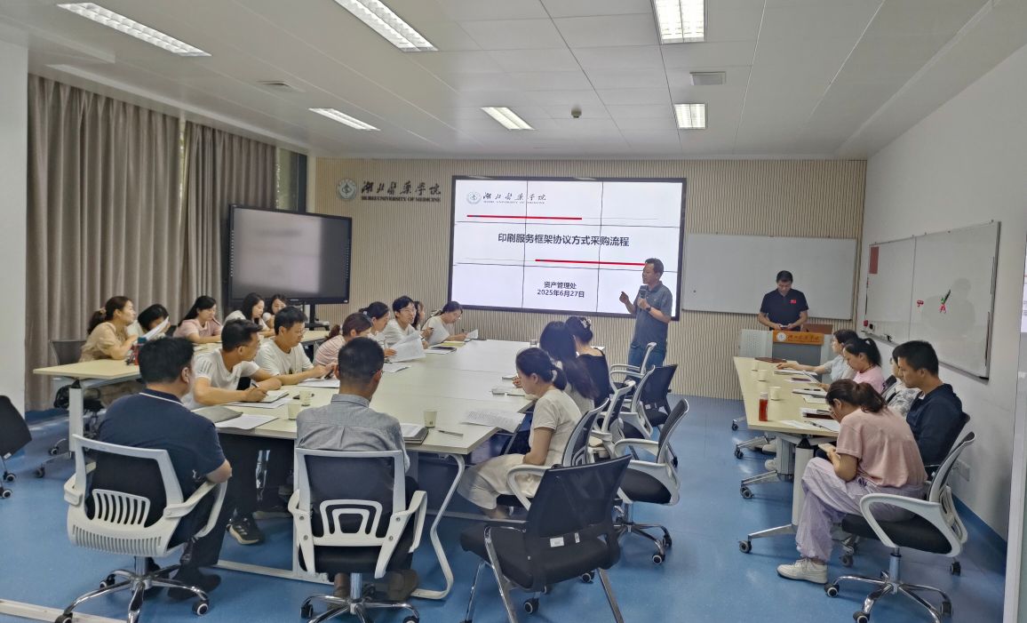 为适应十堰市印刷服务框架协议方式采购要求,规范校内印刷服务多频次、小额度采购活动,6月27日,资产管理处联合财务处组织学校各单位办公室负责人和资产管理员,开展印刷服务框架协议方式采购流程业务培训。
